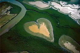 Foto: Yann Arthus- Bertrand, Hart in Voh, Nieuw-Caledonië (Frans overzees gebied) (20°56′ Z – 164°39′ O).