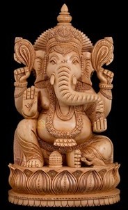 Of ik het met de afbeelding van vandaag beter doe valt nog te bezien. Daarop staat Ganesha afgebeeld, de god van kennis en wijsheid, en van hem durf ik veilig te beweren dat niemand die ooit in het echt heeft zien rondlopen. Zelfs hindoes niet. Wie op het idee kwam een godheid eerst te laten onthoofden en daarna een olifantshoofd op het levenloze lichaam te plaatsen behoort tot de diepe raadselen der godsdiensten. In dat geestelijk domein zijn nog wel buitenissiger verhalen bedacht.