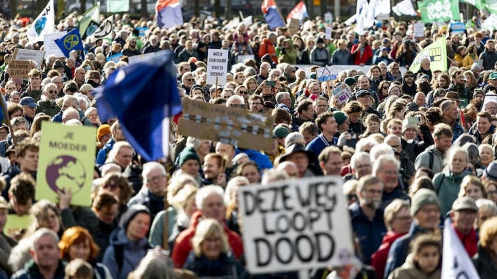 Aan het einde zeien ze nog dat we niet op het Malieveld terug zouden komen. We konden dus zo weer op de trein. Wel alle eigen troep opruimen. Maar we hadden geen troep gemaakt. En we hadden ook geen bord om te demonstreren, met een opvallende tekst of zo. Dan hadden we die natuurlijk meegenomen tijdens de letterlijke mars. We stonden er gewoon voor onszelf. Nou ja, vóór het klimaat. Of nee, tégen de klimaatverandering. Of eigenlijk, we stonden er om iedereen duidelijk te maken dat het klimaat een groot probleem is. Of nee, dat we immense problemen krijgen als de temperaturen maar blijven stijgen en de zeespiegel ook nog -es. Leg het maar eens uit. Daarom hadden we dus ook geen bord, we hoorden nergens bij. Of nee, ook al niet goed, we hoorden bij iedereen.