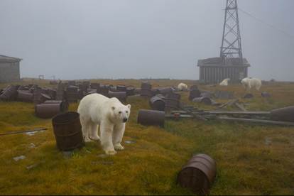 Zo’n vier jaar geleden schoot de Russische natuurfotograaf Dmitry Kokh deze foto van ijsberen die hun intrek in een verlaten weerstation hadden genomen. Dat was op Koljoetsjin, een schiereiland in het verre noordoosten van Rusland, al bijna Alaska. De foto scoorde toen hoog in de publieke belangstelling. Ach. . .
